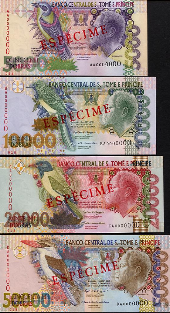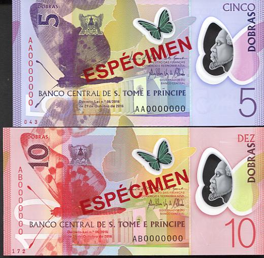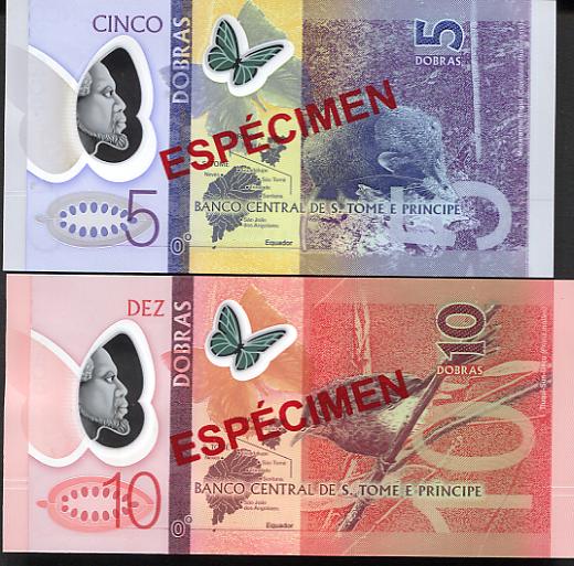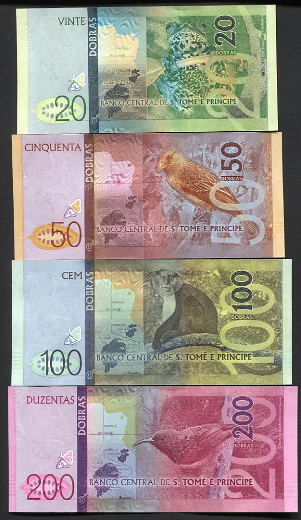 Neuausgabe 2018 - 6 Werte von 5 Dobras bis 200 Dobras, die beiden kleinen Werte in Polymer und die anderen Ausgaben in Papier.
