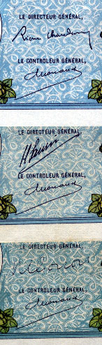 Ich biete in meinem Shop jetzt alle vier, unteren Werte mit der neuen Signatur (Gouverneur Rasamoely) an.