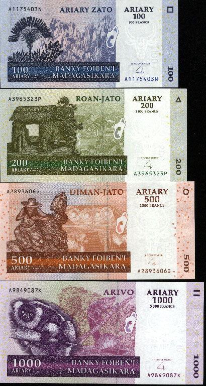 unteren vier Werte 100, 200, 500 und 1000 Ariary