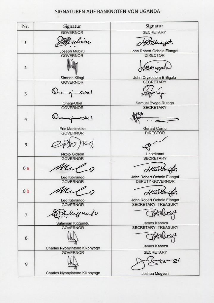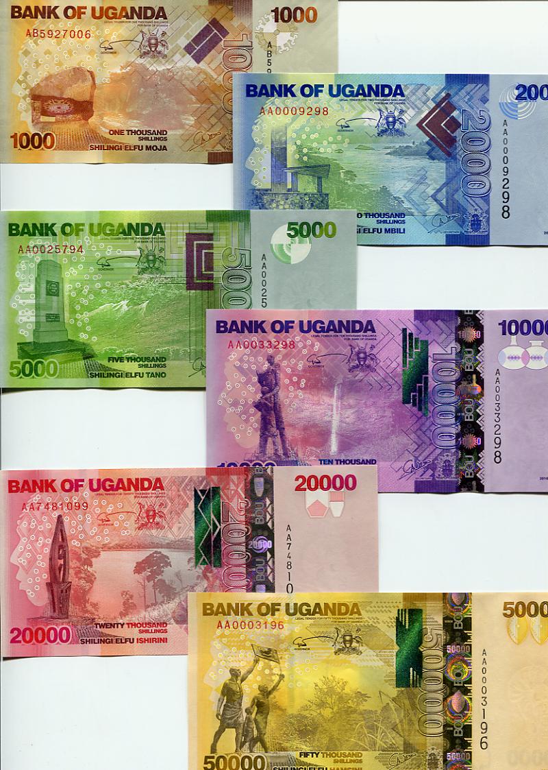Uganda hat 2010 eine neue Serie Banknoten in den Umlauf gebracht.