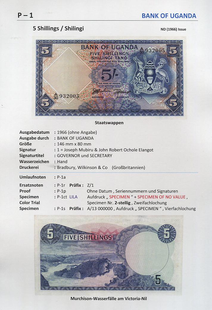 Uganda ist seit 1962 unabhängig. 1966 gab es die erste eigene Währung den Shillings. Im Welt Katalog sind zur Zeit 14. Auflage 47 Nummern registriert. Dieses Land kann man noch komplett sammeln, es gibt viele Varianten hauptsächlich Datumsvarianten.