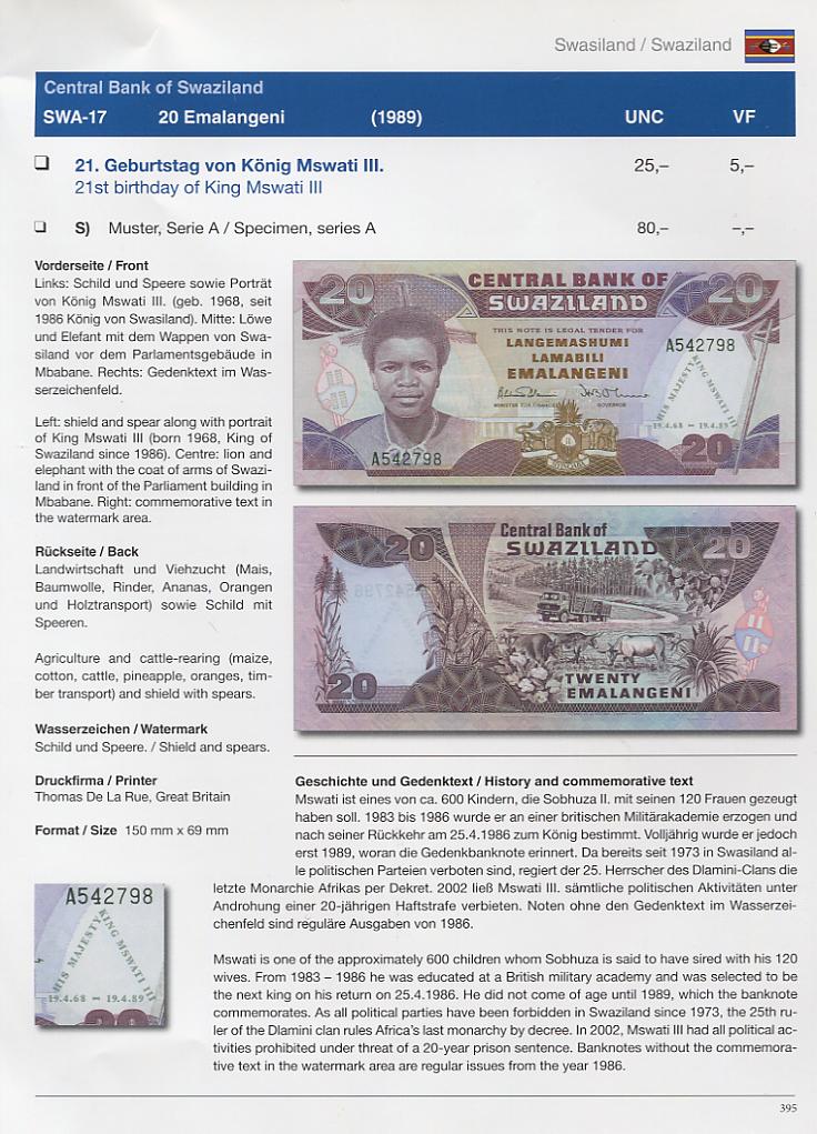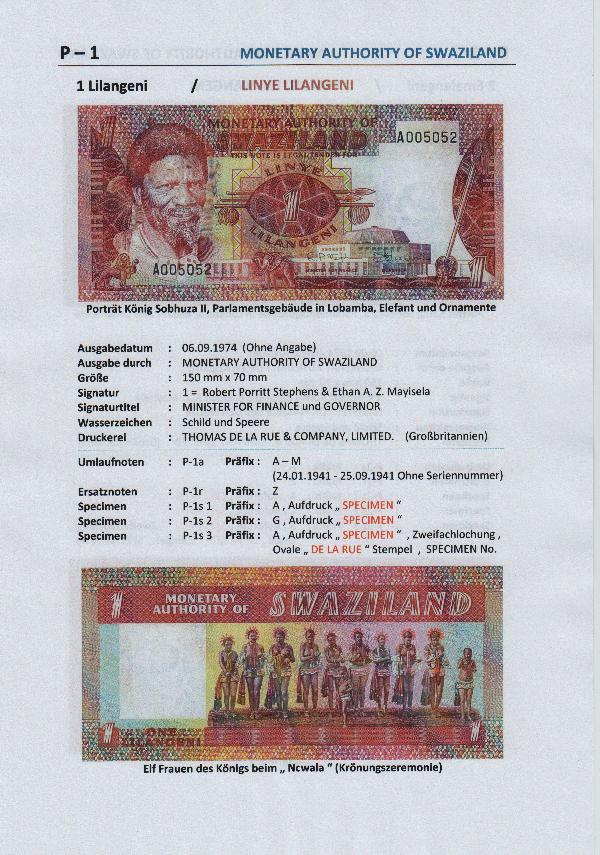 Seit 2018 wurde der neue Namen ESWATINI eingeführt. Die Umstellung auch auf den Banknoten ist noch immer nicht für alle Werte erfolgt.