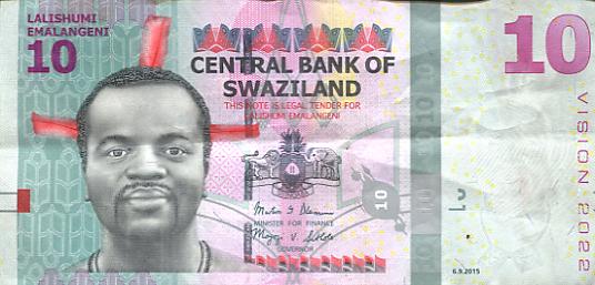 Es gibt eine neue 10 Emalangeni Banknote 6.09.2015 (Ausgegeben im August 2017).