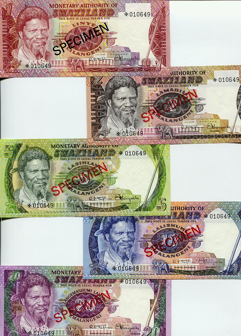 Monetery Authority of Swaziland - Specimen Satz Pick Nummer CS 1