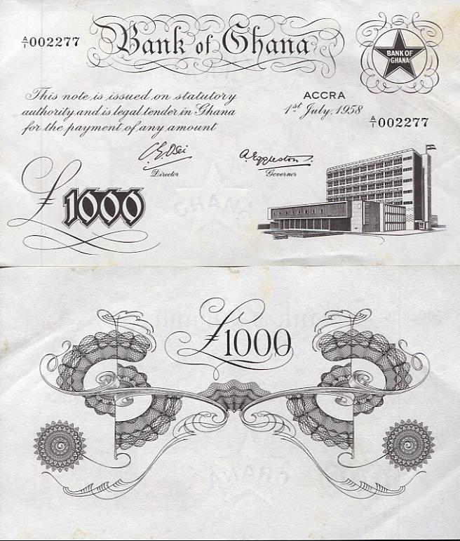 Zur ersten Gedenkbanknote Ghanas gibt es auch eine Ersatzbanknote.