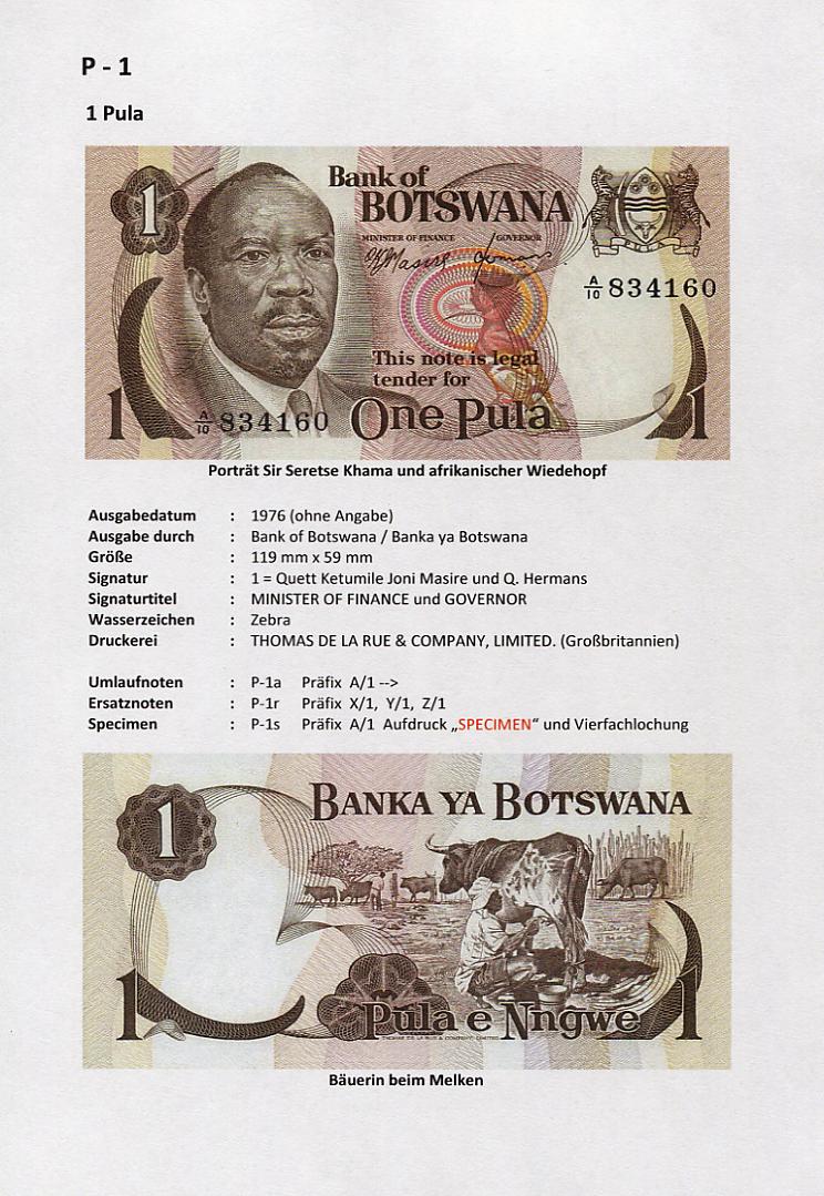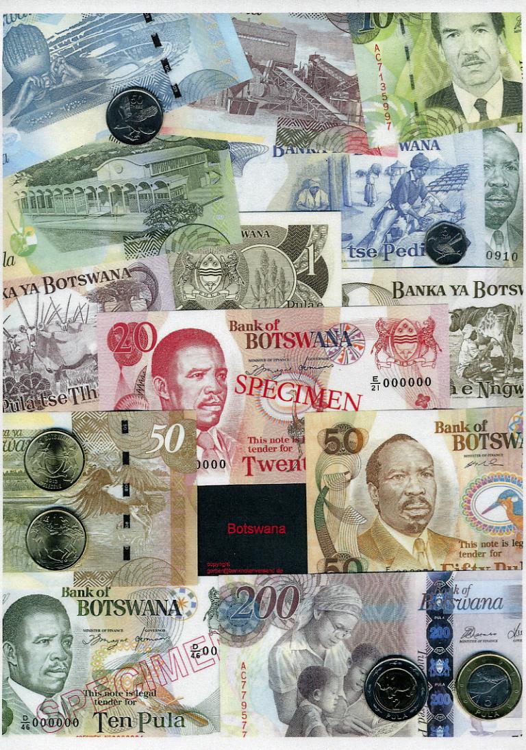 Ein Land mit sehr junger Währungsgeschichte. 1966 unabhängig vom Königreich Großbritanien und ab 1976 eine eigene Währung den Pula (Regen). Für dieses afrikanische Land ist es noch möglich eine komplette Sammlung aufzubauen.