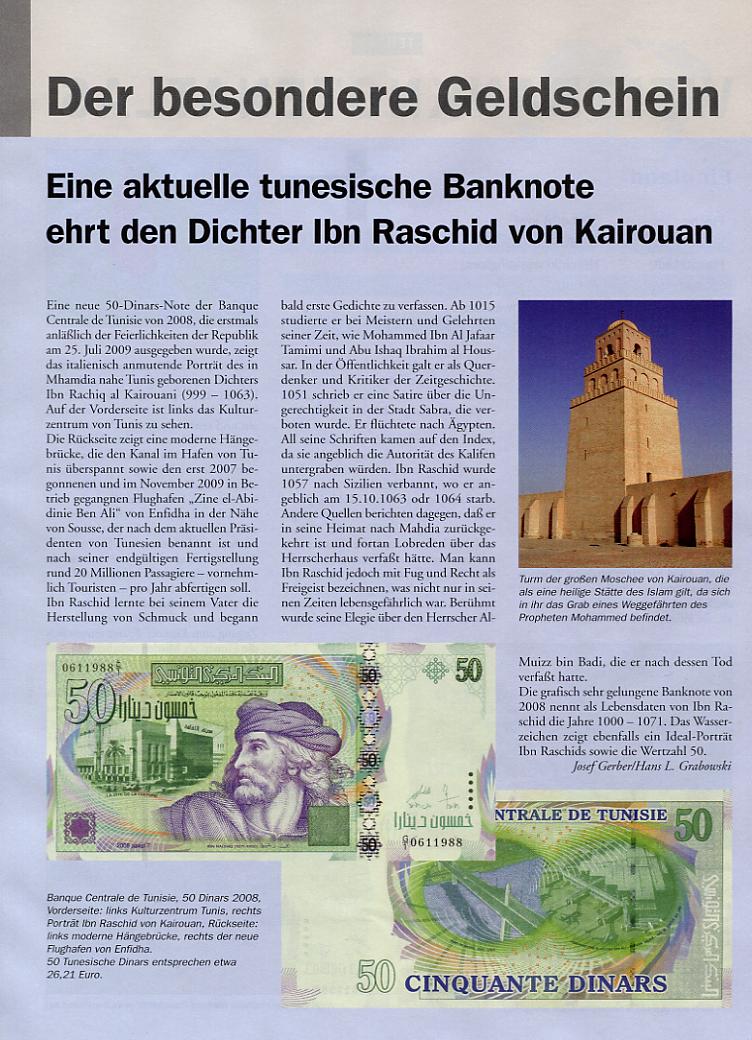 Die Geschichte wiederholt sich, im neuen Gedenkbanknoten Katalog sind vier Gedenkausgaben aus Tunesien. Diese erinnern an die Abdankung von Bourguiba 1987. Mal sehen ob es für die Abdankung von Abidine Ben Ali auch eine Gedenkbanknoten Ausgabe geben wird.Zur Erinnerung, damals wurde der 7. November als Beginn von Demokratie, Recht und Gesetz ausgerufen. Heute sieht man was daraus geworden ist.