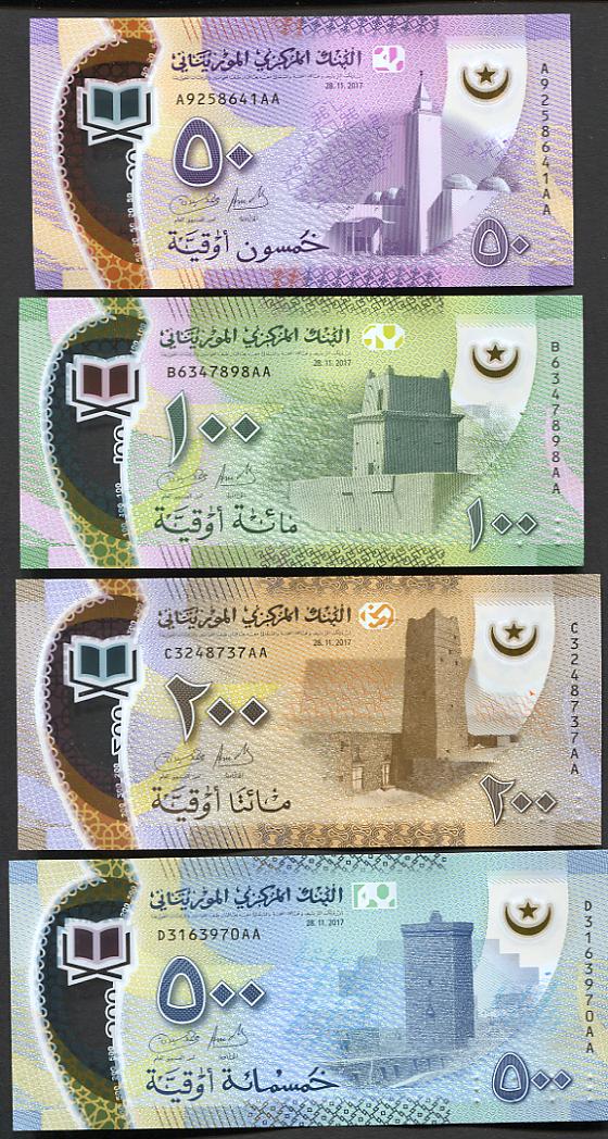 Mauretanien hat einen neuen Banknotensatz in den Umlauf gebracht, diesmal Polymerbanknoten mit Datum 28.11.2017