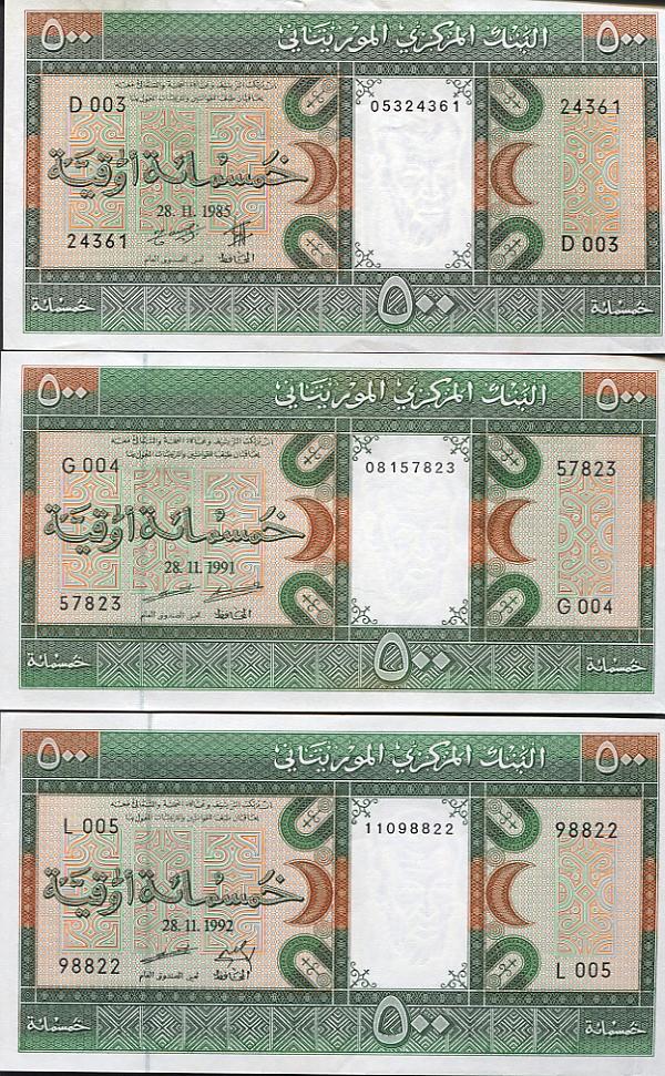 Pick Nummer 6 a - i und Specimen = 500 Ouguiya 1979 - 1996