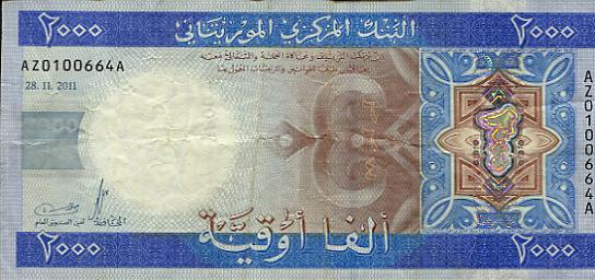 Dabei habe ich bei dem neuen 2000 Ouguiya 2011 Schein eine Ersatzbanknote entdeckt Serie AZ