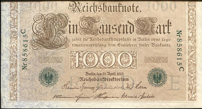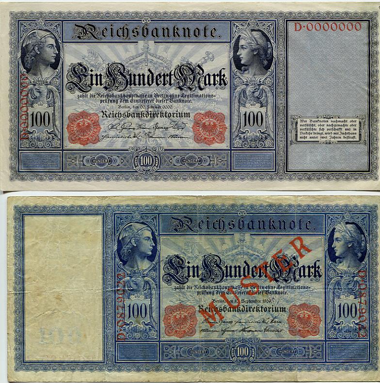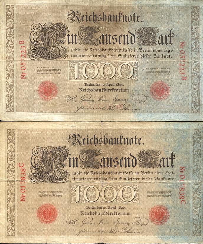 Ro. Nr. 45a Vorkriegsausgaben: Siegel rot, Kennnummer 6 stellig, Fasereinlage blau, 12/1911 bis 11/1918
