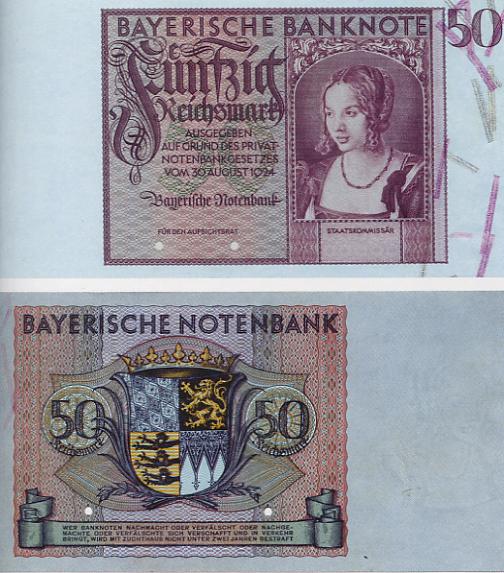 Rosenberg Katalog BAY22 = 50 Reichsmark 30. 08. 1924 nur als Druckprobe bekannt.