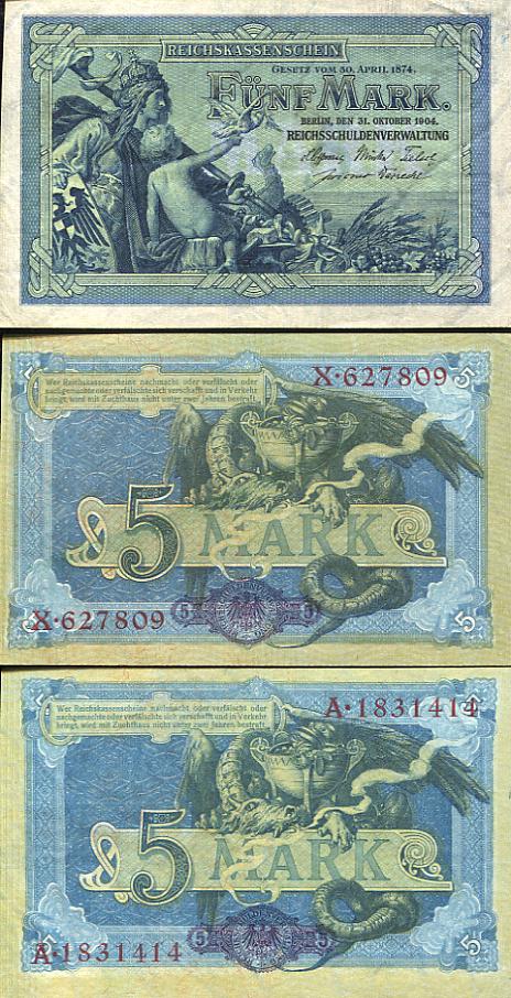 DEU-52 = 5 Mark 31.10.1904 mit 6stelligen und 7stelligen Kennnummern.