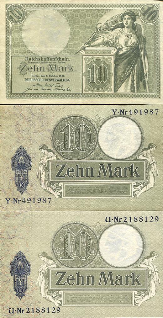 DEU-53 = 10 Mark 6.10.1906 mit 6stelligen und 7stelligen Kennnummern.