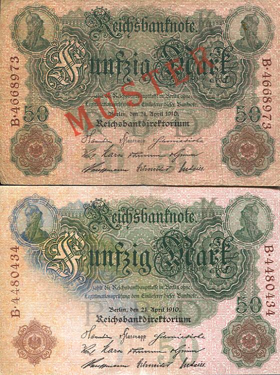 DEU-26 = 50 Mark 1907 es gibt nur zwei Ausgaben Unterdruckbuchstabe D, Seire A und B (bei B hab ich so meine Zweifel, wenn es jemanden gibt der diesen Schein belegen kann?)
