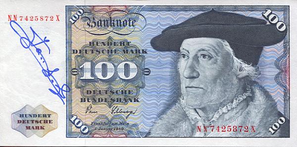 100 Deutsche Mark gestochen von Jose Lopez mit Handsignatur