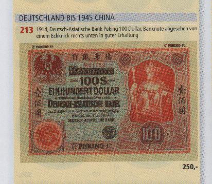 Diese Banknote wurde auf einer Briefmarkenauktion angeboten zu einem Aufrufpreis von 250€