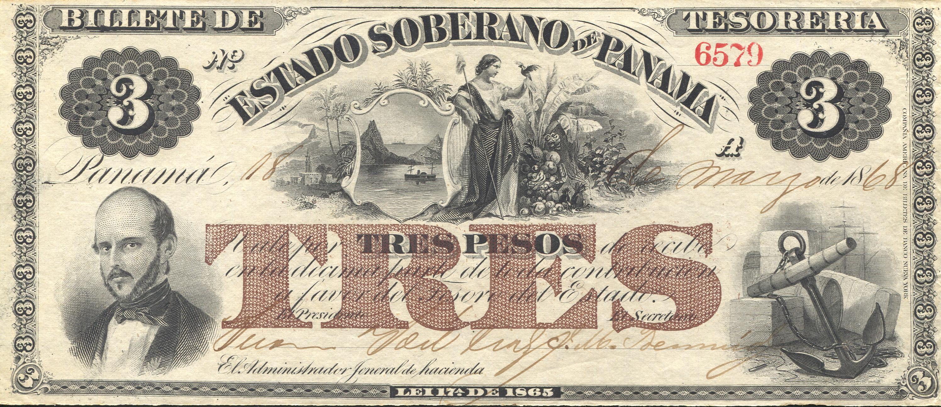 Zeige hier eine Note von 1865, damals Teil von Kolumbien.