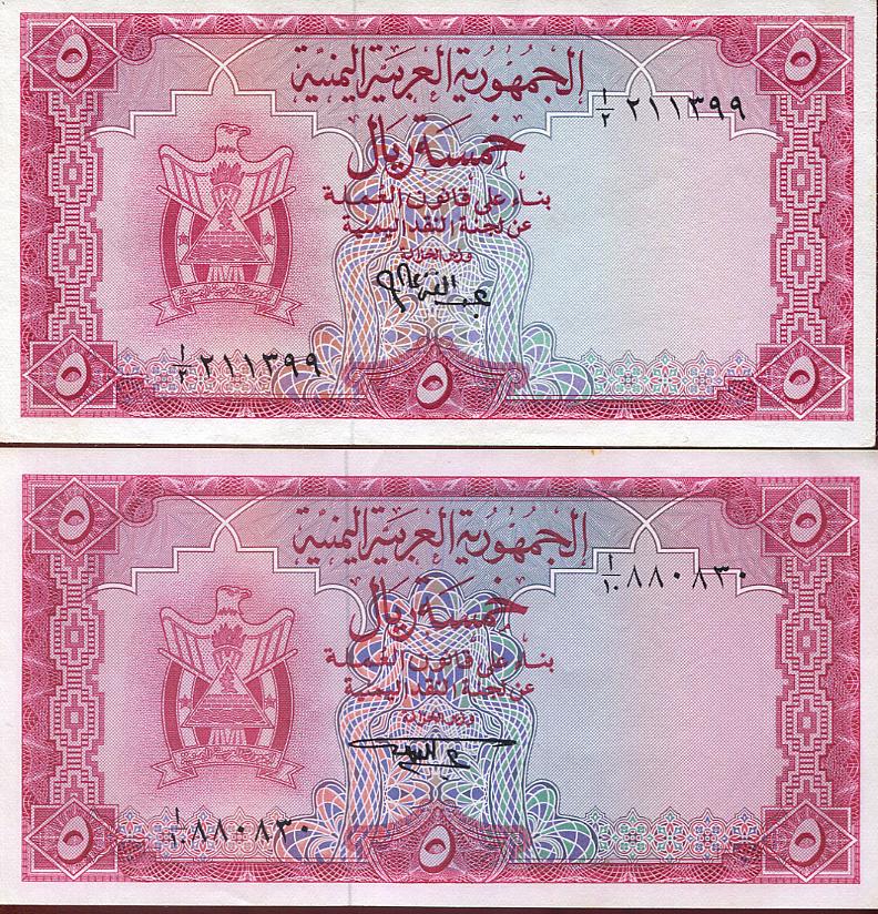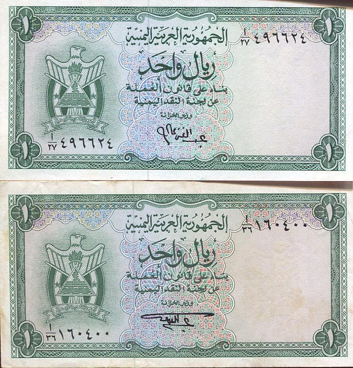 Es werden im Welt Katalog zwei Jemen Staaten geführt. Einmal Yemen Arab Republic, so wie das vereinte Yemen auch jetzt heißt. Vereinigung fand 1990 statt. Unter dem Namen Yemen Arab Republic gibt es seit 1964 eigene Banknoten insgesamt zur Zeit 33 Pick Nummern. Dazu kommt noch Yemen Democratic Republic dort werden 9 Pick Nummern gelistet. Den Jemen kann man auch heute noch komplett sammeln, mit ein bisschen Geduld bekommt man alle Banknoten.