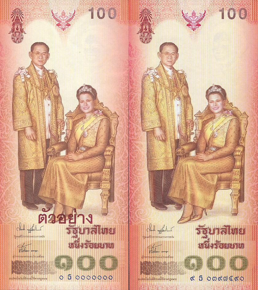 Sirikit (* 12. August 1932 in Bangkok, voller Titel: Somdet Phra Nangchao Sirikit Phra Borommarachininat „Ihre Majestät Königin Sirikit“, ist die Witwe von König Bhumibol Adulyadej. Sie war von 1950 bis 2016 Königin von Thailand; seither trägt sie den Titel Königinmutter. Königin Sirikit, geboren unter dem Namen Mom Rajawongse Sirikit Kitiyakara, ist die Tochter von Prinz Nakkhatra Mangala, dem Fürsten von Chanthaburi, und Mom Luang Bua Kitiyakara (geb. Sanitwong). Sie ist eine Urenkelin von König Chulalongkorn (Rama V.). Sirikit hat zwei ältere Brüder und eine jüngere Schwester. Sie besuchte den Kindergarten an der Rachini-Schule, bevor sie in der Konventschule St. Francis Xavier im Bangkoker Bezirk Dusit Unterricht erhielt. Als ihr Vater Botschafter in Frankreich, später in Dänemark und schließlich in England wurde, setzte Sirikit ihre Ausbildung in diesen Ländern fort. Zum Schluss besuchte sie ein Internat in Genf. In Paris begegnete Sirikit 1947 zum ersten Mal Bhumibol Adulyadej, dem späteren König Rama IX. Die beiden sind durch ihre gemeinsame Abstammung von König Chulalongkorn entfernt verwandt. Nach Bhumibols schwerem Autounfall im Oktober 1948 in der Nähe von Lausanne besuchte ihn Sirikit oft im Krankenhaus. Es entwickelte sich eine Beziehung, die im Juli 1949 zur Verlobung und zur Heirat am 28. April 1950 im Sra-Pathum-Palast in Bangkok führte. Aus der Ehe gingen vier Kinder hervor: Prinzessin Ubol Ratana (* 1951), der frühere Kronprinz und spätere König Maha Vajiralongkorn (* 1952), Prinzessin Maha Chakri Sirindhorn (* 1955) und Prinzessin Chulabhorn Walailak (* 1957). Als Bhumibol Adulyadej 1956 für 15 Tage in ein buddhistisches Kloster ging, wie es für männliche Thailänder üblich ist, führte Königin Sirikit die Geschäfte des Königshauses. Seither trägt sie den Titel Phra Borommarachininat („Königin und Regentin“). Seit dem 12. August 1956 ist die Königin Präsidentin des Roten Kreuzes in Thailand. In dieser Position sorgte sie für die Errichtung mehrerer Flüchtlingslager an der Grenze zu Kambodscha, als 1979 etwa 40.000 Khmer vor der Schreckensherrschaft von Pol Pot die Flucht nach Thailand ergriffen. Während und nach der ausführlichen Reise des Königspaars durch Europa und Nordamerika im Jahr 1960 erntete Sirikit große öffentliche Aufmerksamkeit. Insbesondere die Unterhaltungspresse würdigte ihre Attraktivität und ihr Modebewusstsein. 1965 zeichnete das Magazin Vanity Fair sie als „bestangezogene Frau der Welt“ aus. Königin Sirikit im Jahr 2003 Ihr Einsatz für Toleranz gegenüber der muslimischen Minderheit im Süden Thailands (Provinzen Pattani, Yala und Narathiwat) machte sie bei der dortigen Bevölkerung außerordentlich beliebt. Während der politischen Krise 2008 bezog Sirikit Stellung für die Volksallianz für Demokratie („Gelbhemden“). Sie besuchte die Trauerfeier einer getöteten Aktivistin und spendete Geld für die Behandlung von Mitgliedern der Protestbewegung, die bei ihren Auseinandersetzungen mit Sicherheitskräften verletzt worden waren. Das thailändische Majestätsbeleidigungs- oder Lèse-Majesté-Gesetz (französisch, vom lateinischen Laesa maiestas) stellt beleidigende Äußerungen oder Handlungen gegenüber dem König von Thailand, der königlichen Familie und der thailändischen Monarchie unter Strafe. Verstöße können gemäß Artikel 112 des thailändischen Strafgesetzbuchs mit Gefängnisstrafen von bis zu 15 Jahren pro Tat geahndet werden. Das thailändische Gesetz schützt auch ausländische Majestäten und Staatschefs, Beleidigungen solcher Persönlichkeiten können gemäß Artikel 133 mit bis zu 7 Jahren Gefängnis und/oder Geldstrafen bis 14.000 Baht bestraft werden. Deshalb sind auch Banknoten besonders geschützt, dort darf keine Veränderung jeglicher Art vorgenommen werden und auch Veröffentlichung der Banknoten steht unter diesem Gesetz. Das Erdbeben im Indischen Ozean – auch Sumatra-Andamanen-Beben genannt – am 26. Dezember 2004 um 00:58 Uhr UTC (07:58 Uhr Ortszeit in West-Indonesien und Thailand) war ein unterseeisches Megathrust-Erdbeben mit einer Magnitude von 9,1 und dem Epizentrum 85 km vor der Nordwestküste der indonesischen Insel Sumatra. Es war das drittstärkste jemals aufgezeichnete Beben und löste eine Reihe von verheerenden Tsunamis an den Küsten des Indischen Ozeans aus. An den Stränden waren viele Menschen zum Sonnen und Baden, insgesamt starben durch das Beben und seine Folgen etwa 230.000 Menschen. Die Tsunamis waren damit die tödlichsten aller Zeiten. Über 110.000 Menschen wurden verletzt, über 1,7 Millionen Küstenbewohner rund um den Indischen Ozean wurden obdachlos. Da die Königin Sirikit auch die Präsidentin des Thailändischen Roten Kreuzes ist wurde der gesamte Erlös der Gedenkbanknote, der von der Zentralbank überwiesen wurde, für die Tsunami Opfer verwendet.