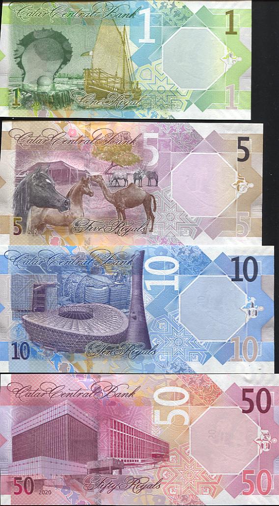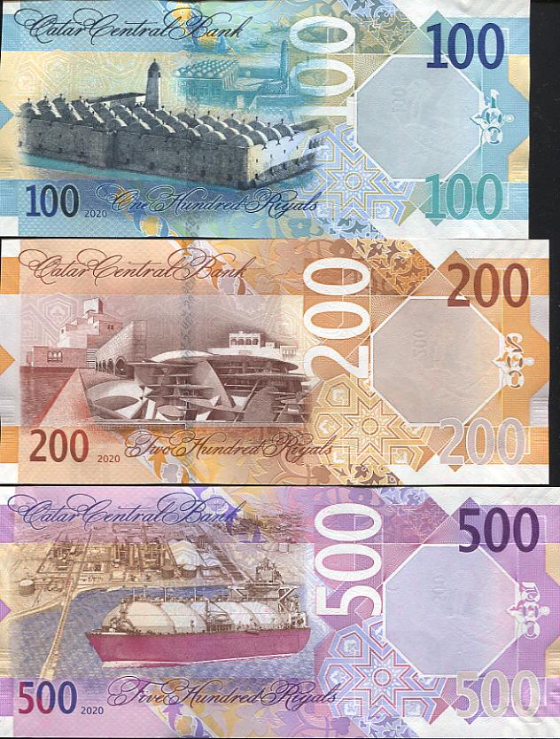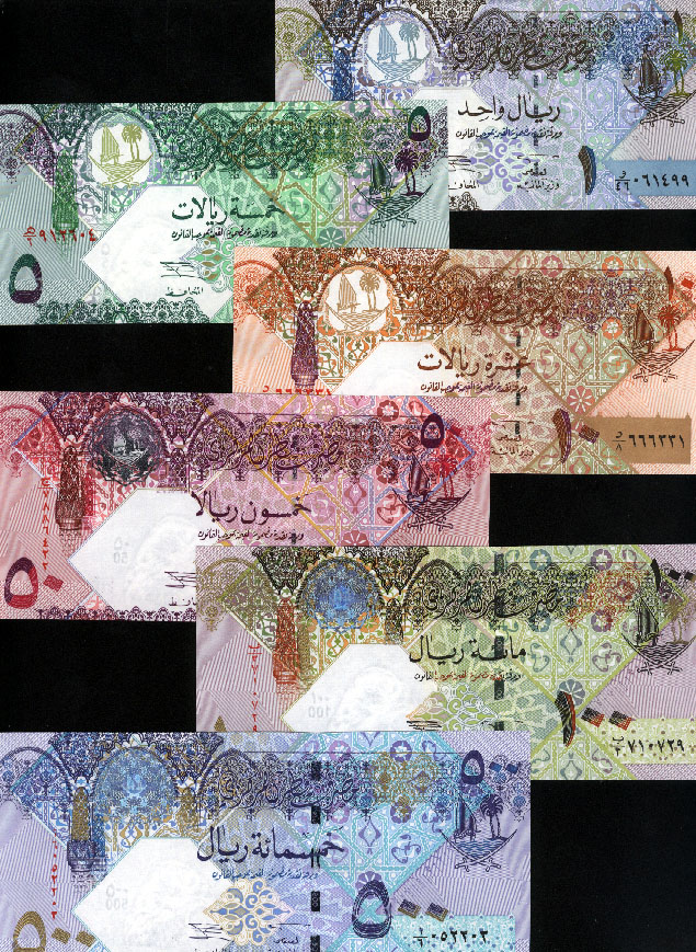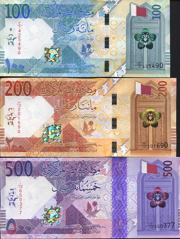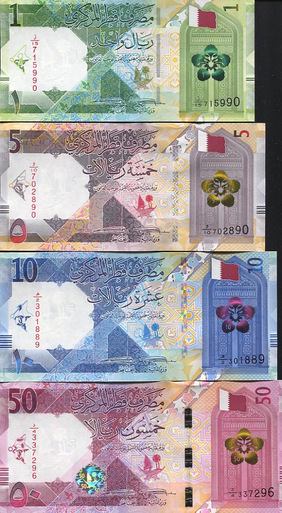 Am Anfang unter Qatar Monetary Agency,es wurden zwei Sätze emitiert. Ab 1996 unter der Qatar Central Bank, auch dort waren es zwei komplette Sätze jeweils von 1 bis 500 Riyal.