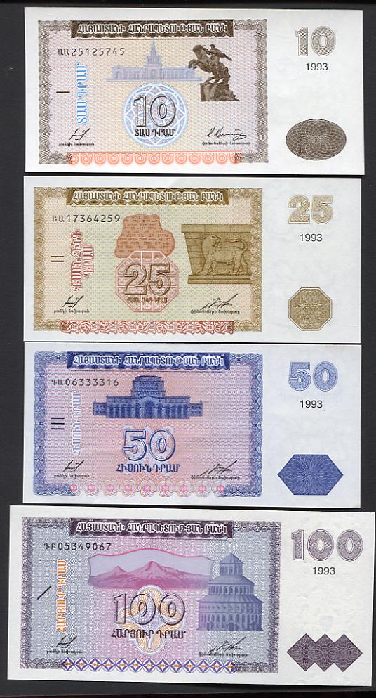 Alle Banknoten bis 1998, das sind die Werte 10, 25, 50, 100, 200, 500, 1000 und 5000 Dram wurden ausser Kurs gesetzt. Es gelten jetzt nur noch die Banknoten mit dem Datum ab 1999.