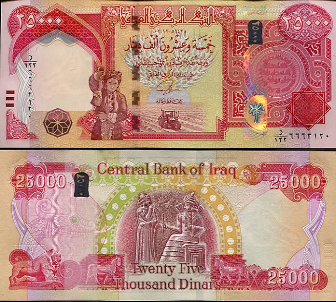 25.000 Dinars und 5.000 Dinars mit Datum 2013 jetzt im Umlauf.