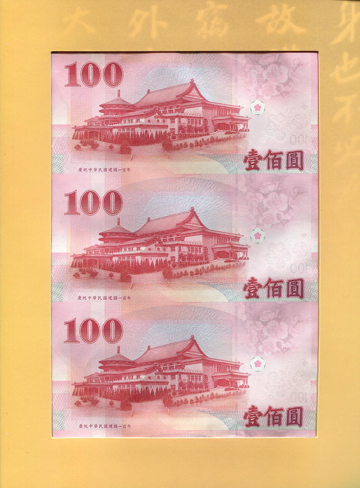 Früherer Staatsname Formosa. Am 6. Januar 2011 hat Taiwan eine neue Gedenkbanknote emittiert. Es handelt sich hierbei um eine 100 Yuan Banknote, Aussehen wie die Umlauf Banknote in rötlicher Farbe.Dies ist die zweite Gedenkbanknote Taiwans und diese wird in meinem neuen Gedenkbanknoten Katalog 2. Ausgabe mit aufgenommen.Bei meinem Besuch Taiwans habe ich die beiden größten Städte besucht Taipeh und Kao-hsiung.