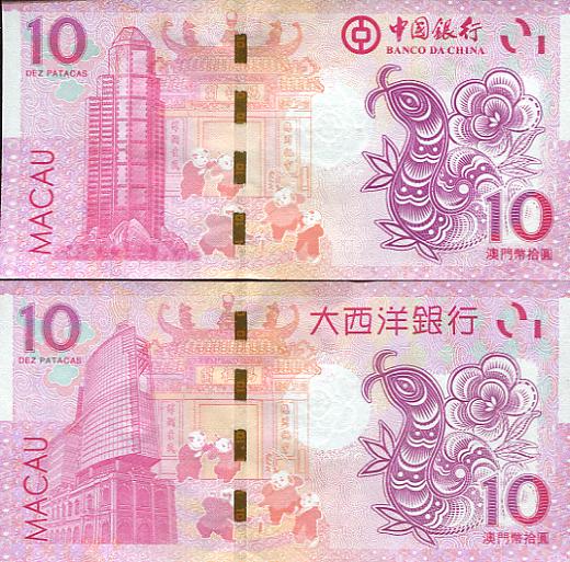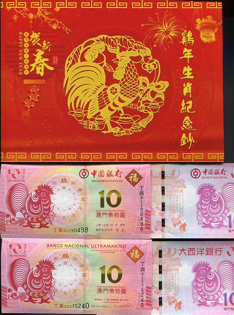 Zum Jahr 2017 - Jahr des Hahnes brachte Macau diese Gedenbanknote in den Umlauf.