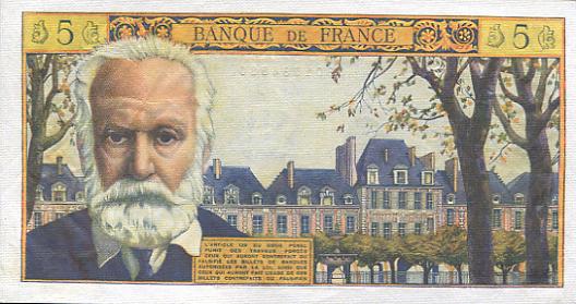 „Das Buch als Buch gehört dem Autor, aber als Gedanke gehört es – der Begriff ist keineswegs zu mächtig – der Menschheit. Jeder denkende Mensch hat ein Recht darauf. Wenn eines der beiden Rechte, das des Autors oder das des menschlichen Geistes, geopfert werden sollte, dann wäre es, zweifellos, das Recht des Autors, denn unsere einzige Sorge gilt dem öffentlichen Interesse, und die Allgemeinheit, das erkläre ich, kommt vor uns.“ – Victor Hugo Die Banknote zu 5 Nouveaux Francs 1959 der Banque de France zu Ehren von Victor Hugo mit dem Panthéon (Paris), seinem Bestattungsort, und dem Place des Vosges in Paris wo er vorübergehend lebte.