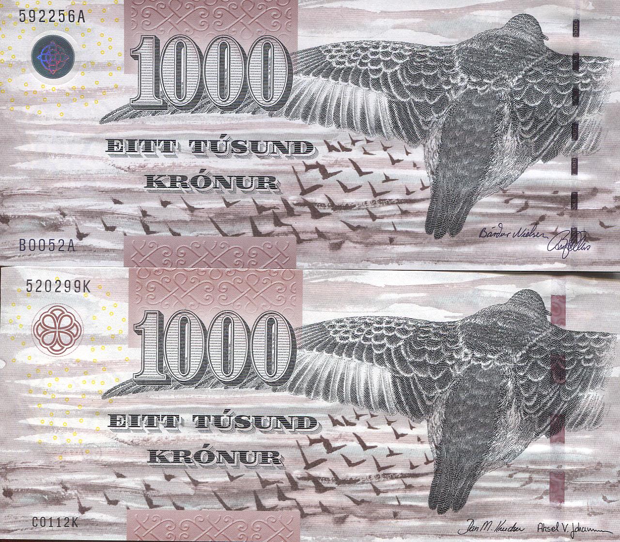 Rückseite 1000 Kronur 2011, gültige Währung.