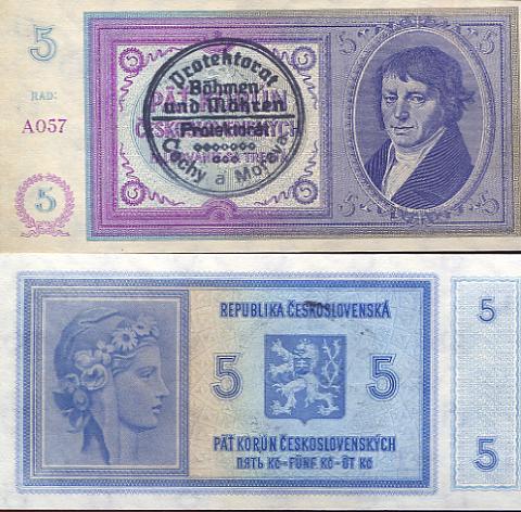 Staatsnoten für das Protektorat Böhmen Mähren 1940 - 1944