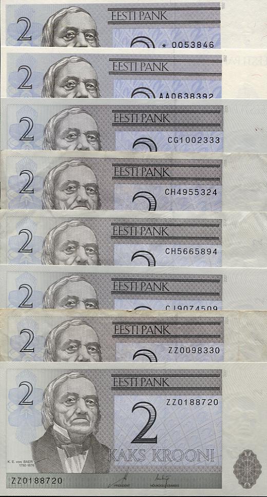 Auch für Estland gibt es beim 2 Krooni Schein von 1992 - 2007 Ersatznoten, einmal Sternchen und auch Serie ZZ