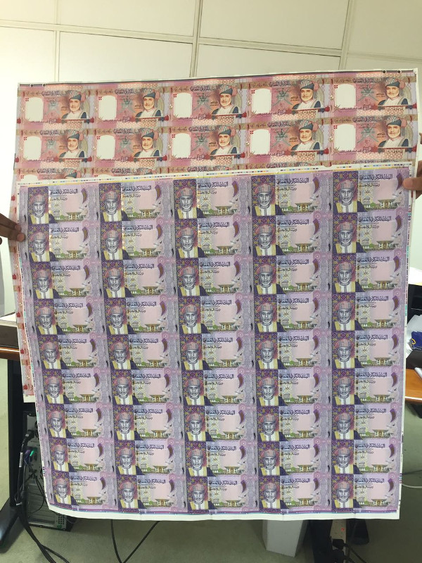 Die Zentralbank vom Oman gibt Bögen aus von 1 Rial alt und 1 Rial Neu.