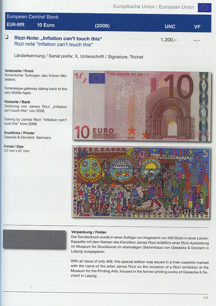 Im Gedenkbanknoten Buch fand die Rizzi Banknote auch ihren Platz.
