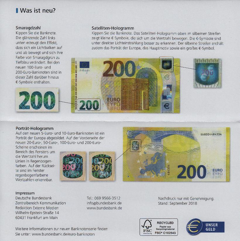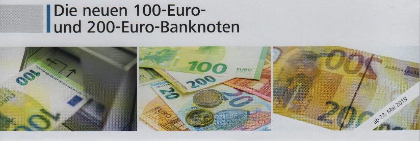 Am 28. Mai 2019 kommen die weitereen Werte 100 und 200 Euro der neuen Generation in den Umlauf.