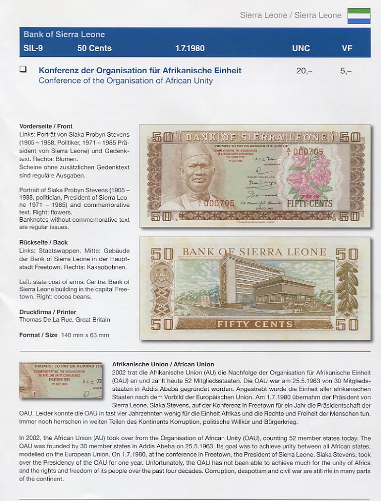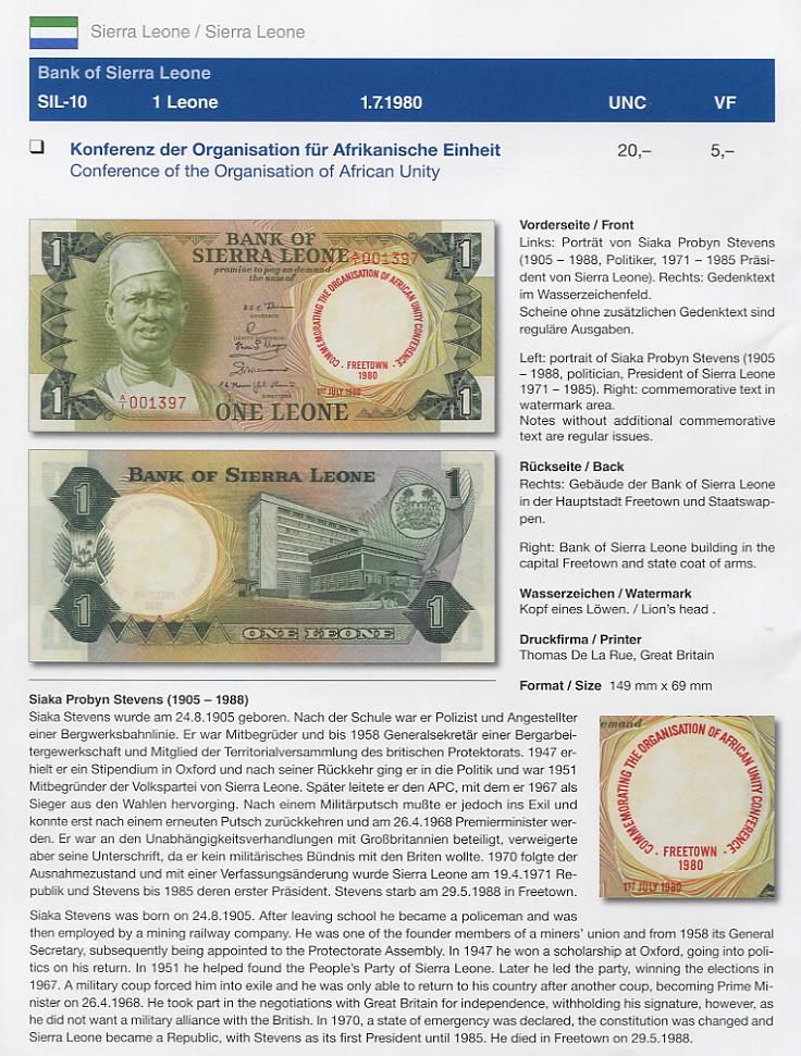 Gedenkbanknote - KIonferenz der Organisation für Afrikanische Einheit