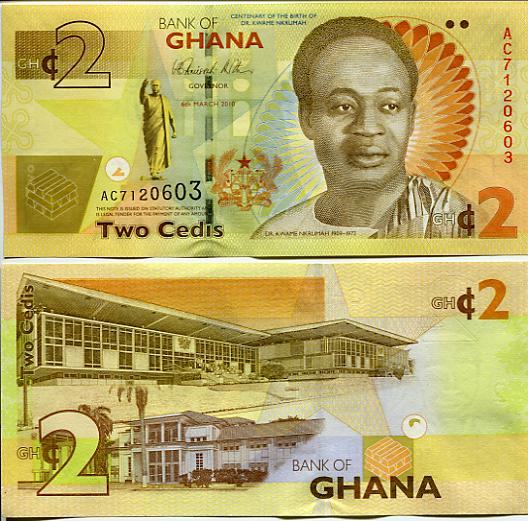 2 Cedis Ghana und 500 Francs Congo Democratic Rep.