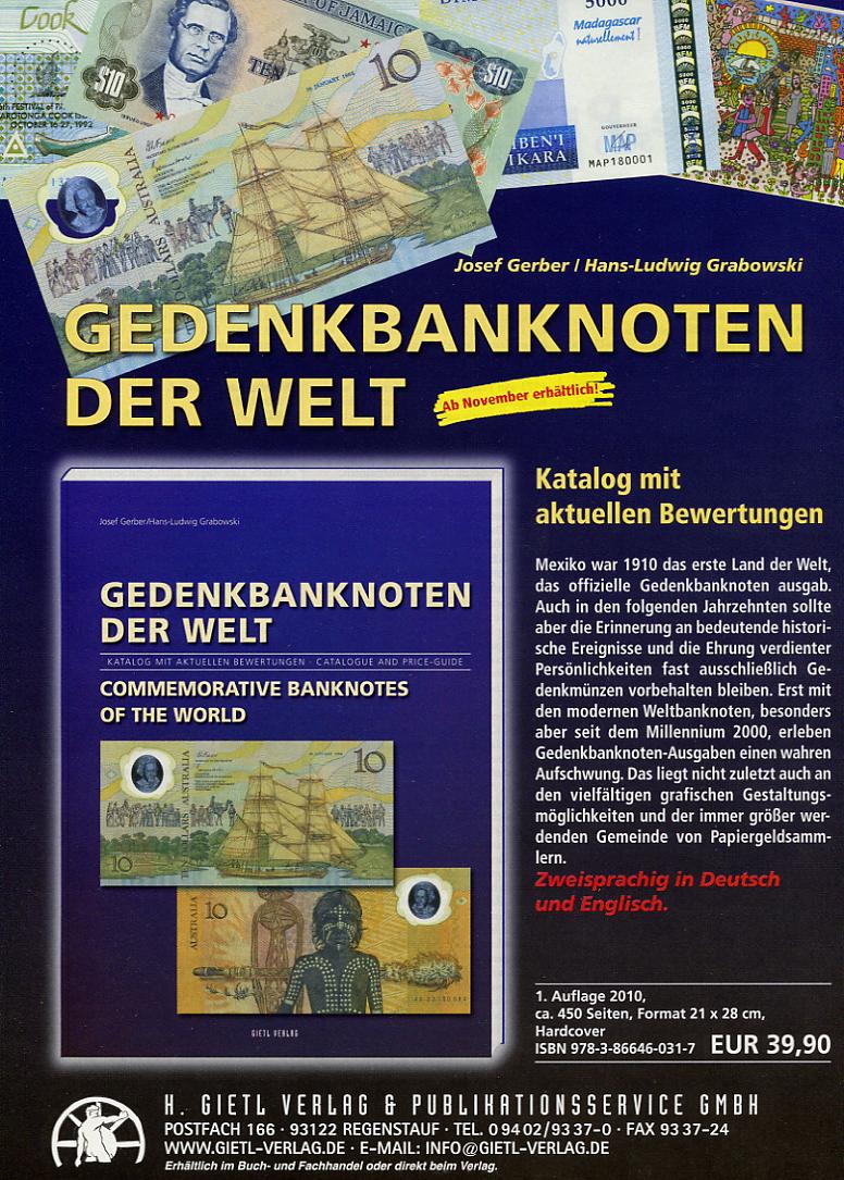 erhältlich. Aber auch so ist dieses Werk sehr preiswert. Wir haben für Sie 430 Gedenkbanknoten gefunden und alle mit dem entsprechenden Anlass auch ausführlich beschrieben. Alle Abbildungen in Farbe.