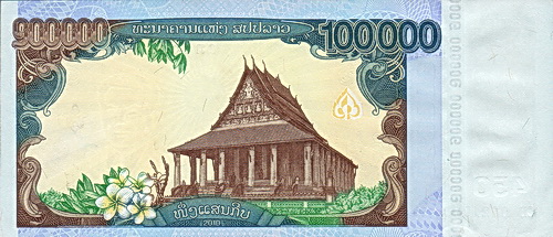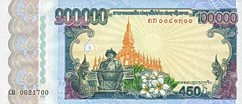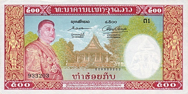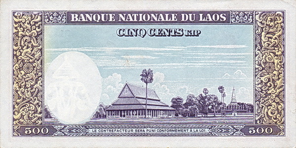 Hier stelle ich Euch die P-7 von Laos vor. Die 500 Kip Gedenkbanknote wurde 1957 (2500 buddhistischer Zeitrechnung) anlässlich des 2.500 jährigen Bestehens des Buddhismus ausgegeben.
