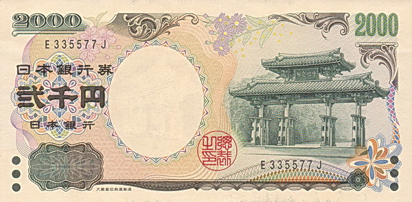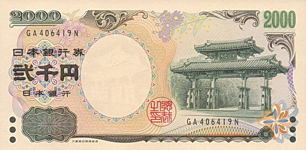 Hier stelle ich die bisher einzige Gedenkbanknote Japans vor. Es ist die P-103 / 2000 Yen, Gedenkbanknote anlässlich des Weltwirtschaftsgipfels in Tokio im Jahr 2000, die es in der a- und b-Ausführung gibt. a. Einzelner Präfix-Buchstabe b. Doppelte Prefix-Buchstaben