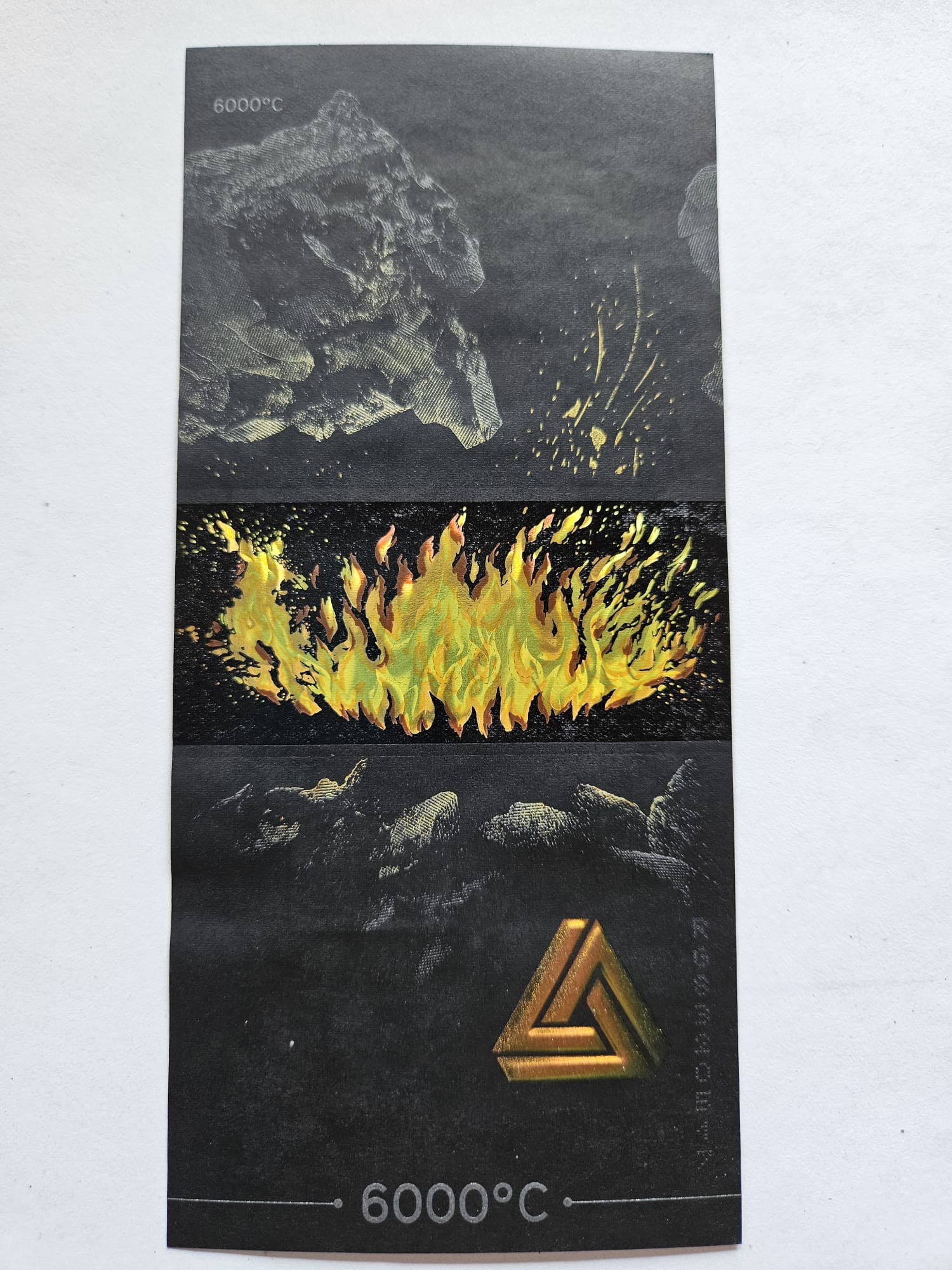 Eine KINEGRAM COLORS® Laminierfolie wurde passgenau aufgebracht. Auf dem dunklen Untergrund kommen die zischenden Flammen besonders gut zur Geltung.