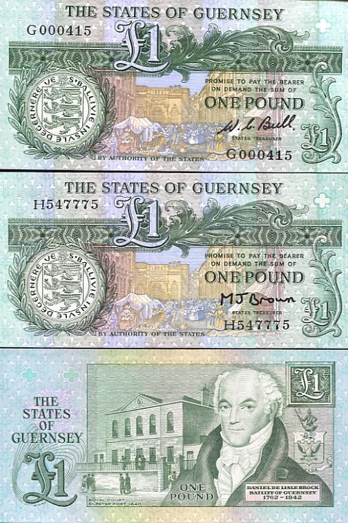 Ein weiteres Beispiel aus Guernsey 1 Pound Vorderseite alter Marktplatz (Foto heute) Rückseite Denkmal Brock, St. Peter Port