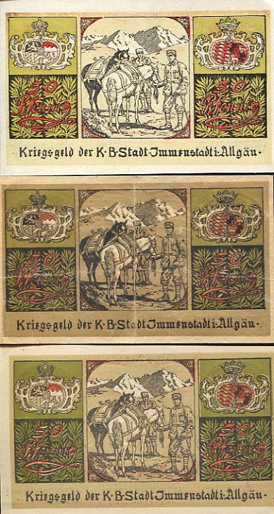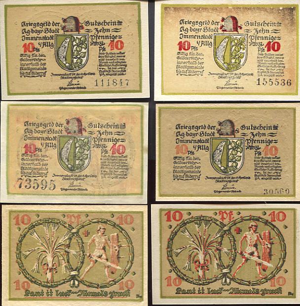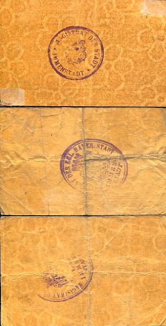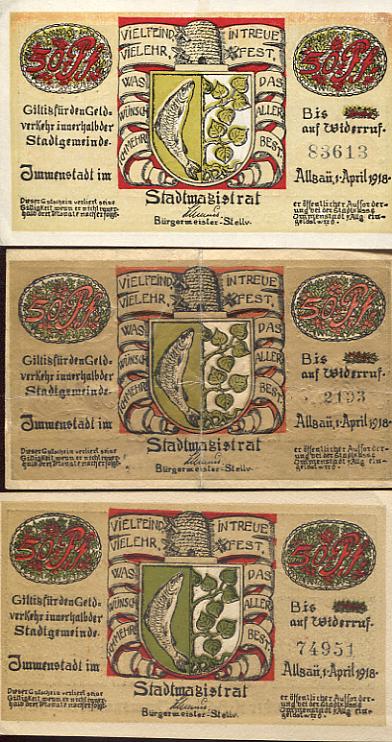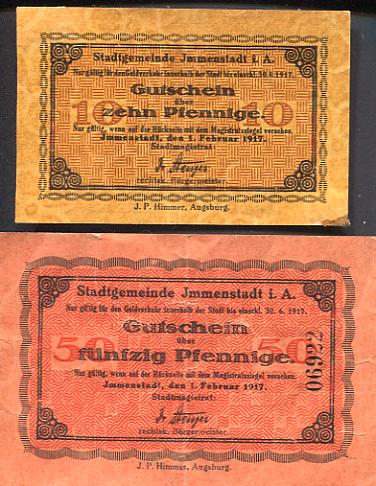 Stadtausgaben 10 und 50 Pfennige 1917 mit verschiedenen Stadtstempeln und auch ohne Stempel auf der Rückseite 10 und 50 Pfennige 1918