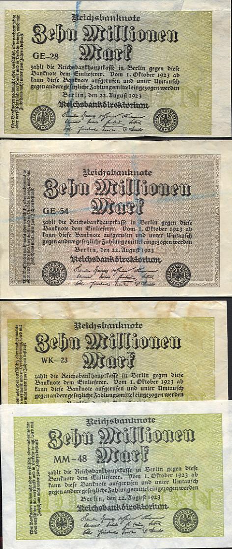 10 Millionen Mark vom 22. August 1923, ausgegeben am 3. und 27.9.1923, Ausserkurssetzung am 6.6.1925, wertlos am 6.7.1925